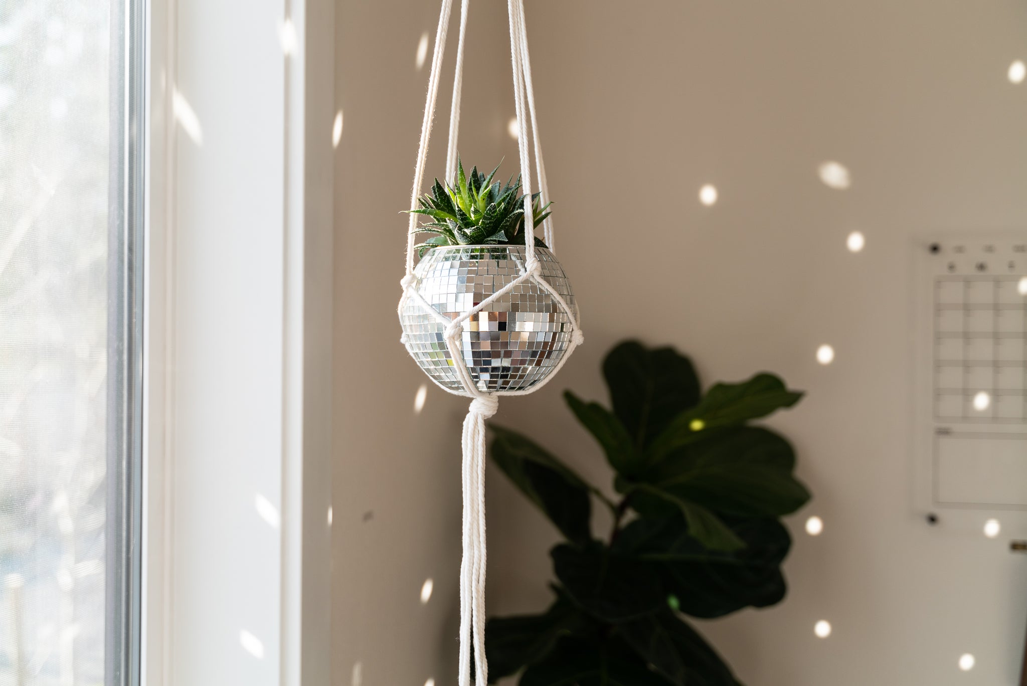 6 Disco Ball Planter With Flat Base White Macrame Hanger Havenstone Home